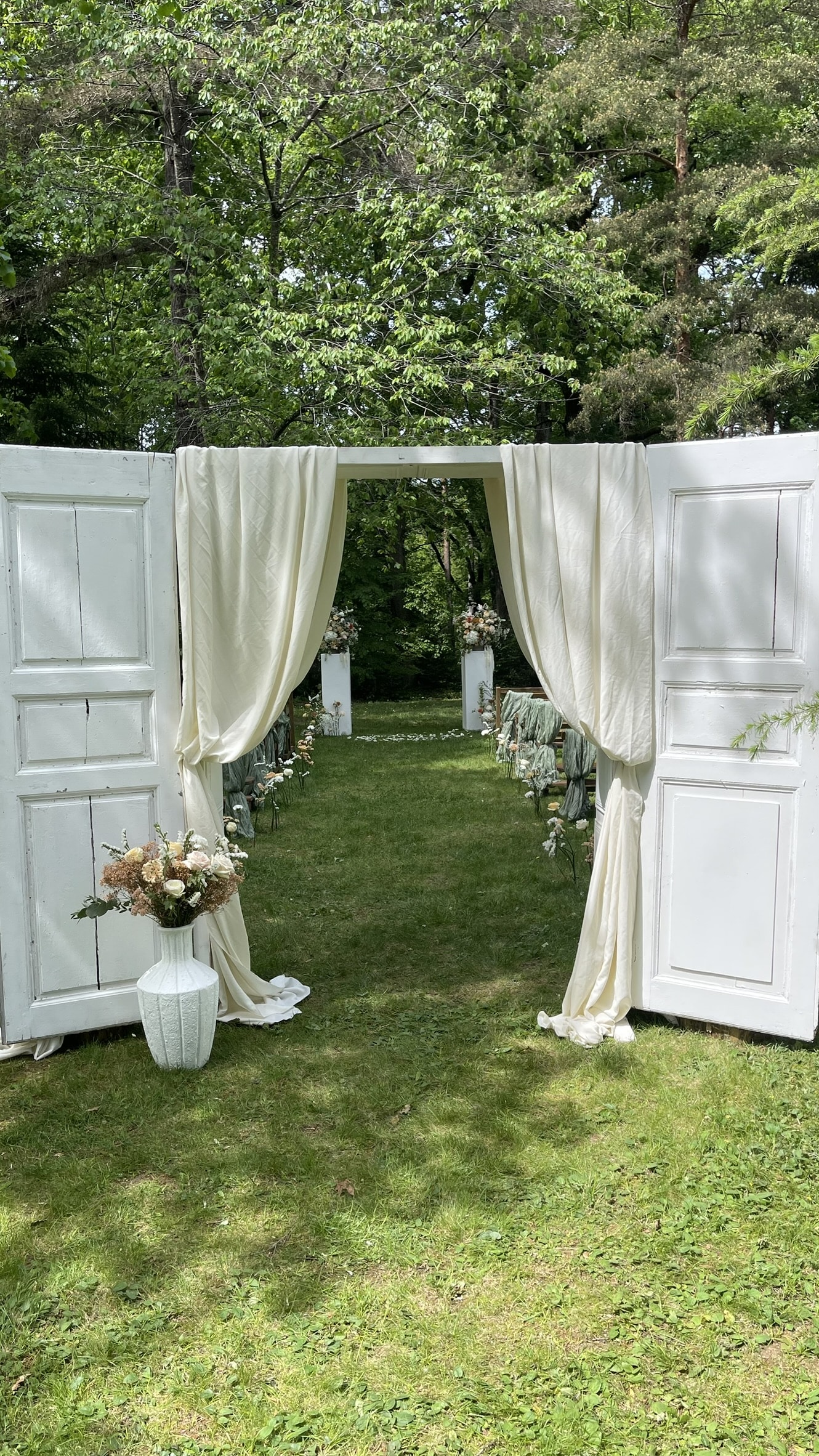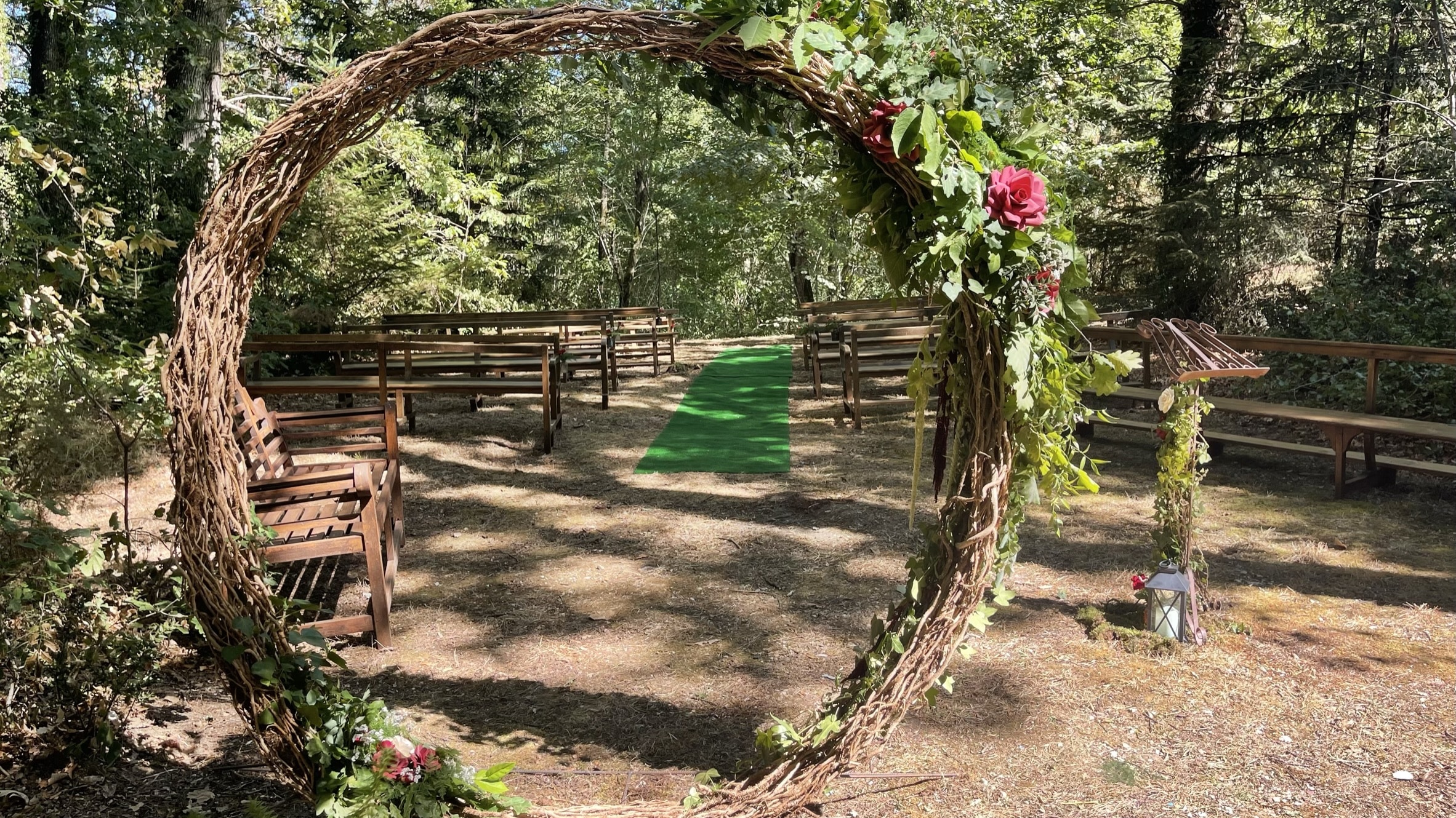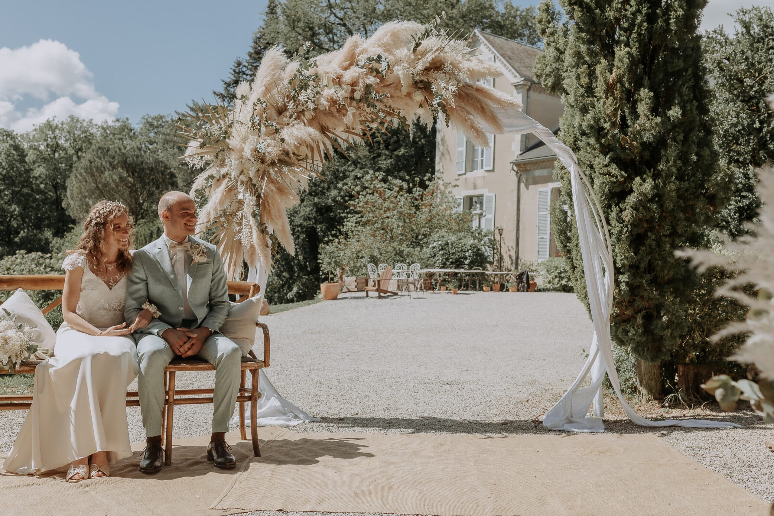 Au Castelet, les cérémonies en plein air ont lieu à côté du château, à l’ombre des tilleuls. Vous avez une arche à votre disposition que vous (ou votre fleuriste) pouvez décorer (ou non) et transformer en décor de mariage féérique dont vous avez toujours rêvé.