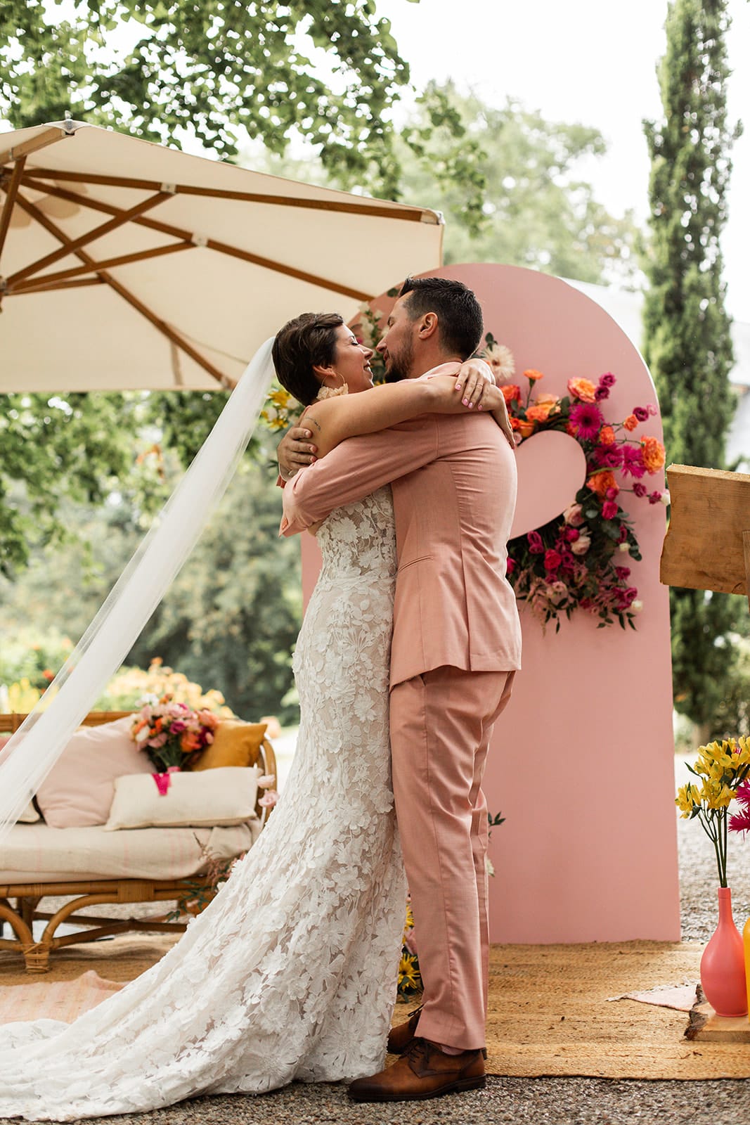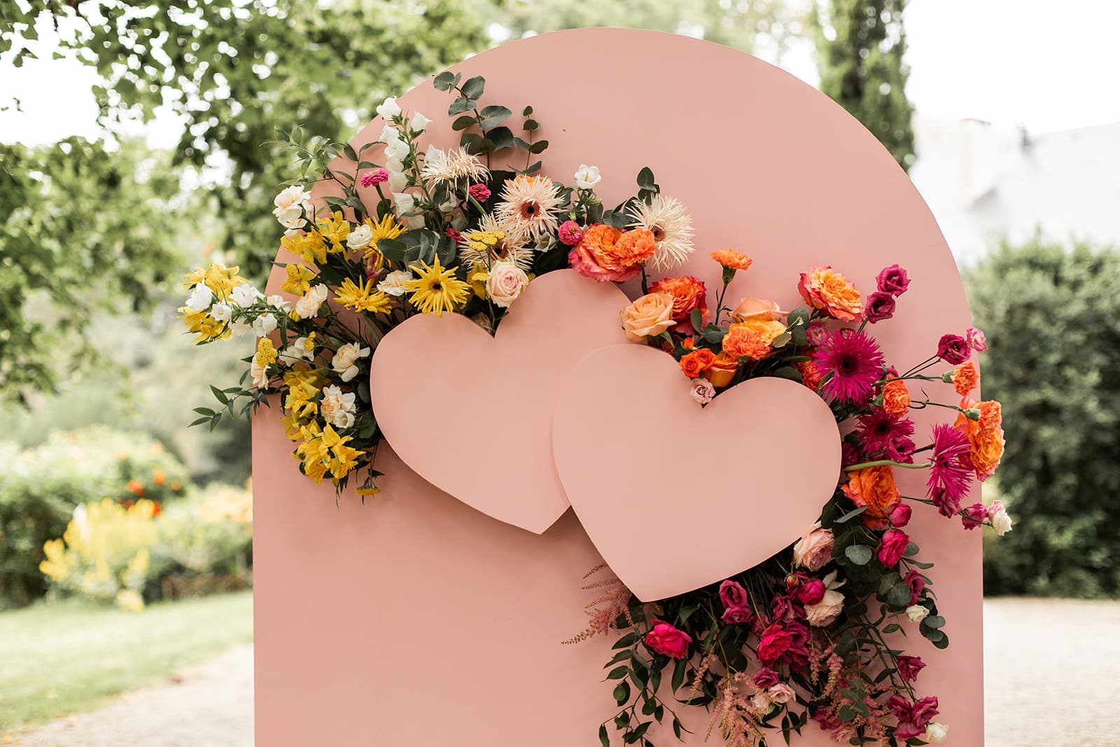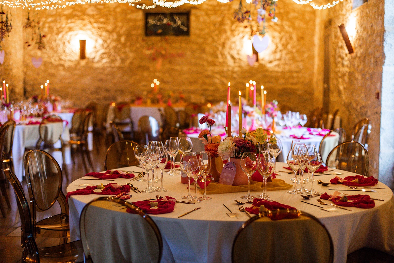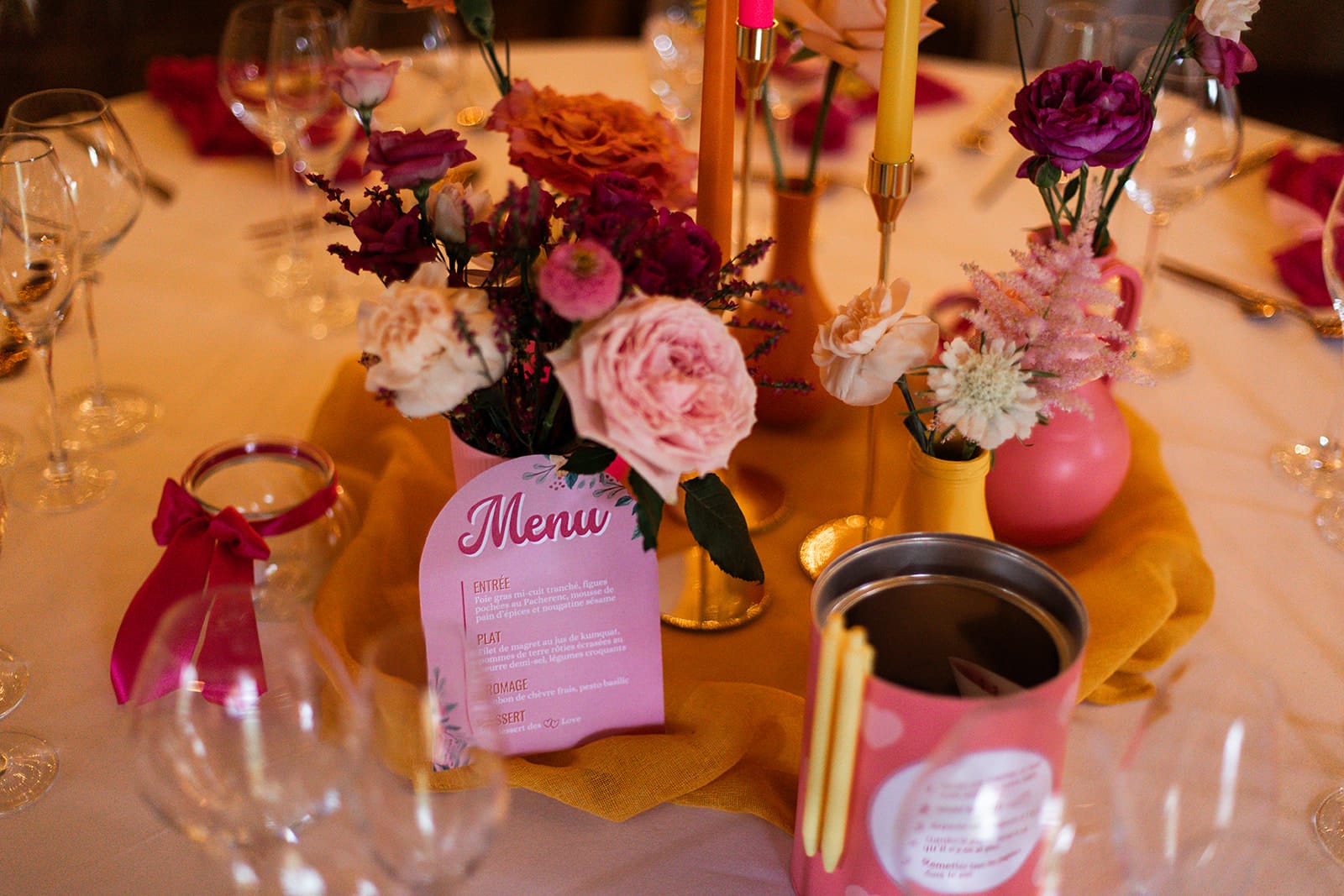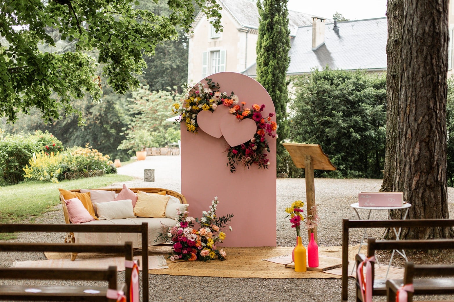Nous avons décidé de faire de notre mariage un événement unique, en mettant l’accent sur la couleur rose, couleur à la fois vibrante et délicate, symbole de tendresse et de romantisme. Nous avons opté pour une décoration florale, colorée et surtout, faite par nous-mêmes ! Les fleurs, les objets décoratifs et même les petites attentions étaient en harmonie avec cette couleur douce et chaleureuse Chaque élément a été conçu avec soin et amour dans notre atelier. Cela a ajouté une touche personnelle et authentique à notre journée.