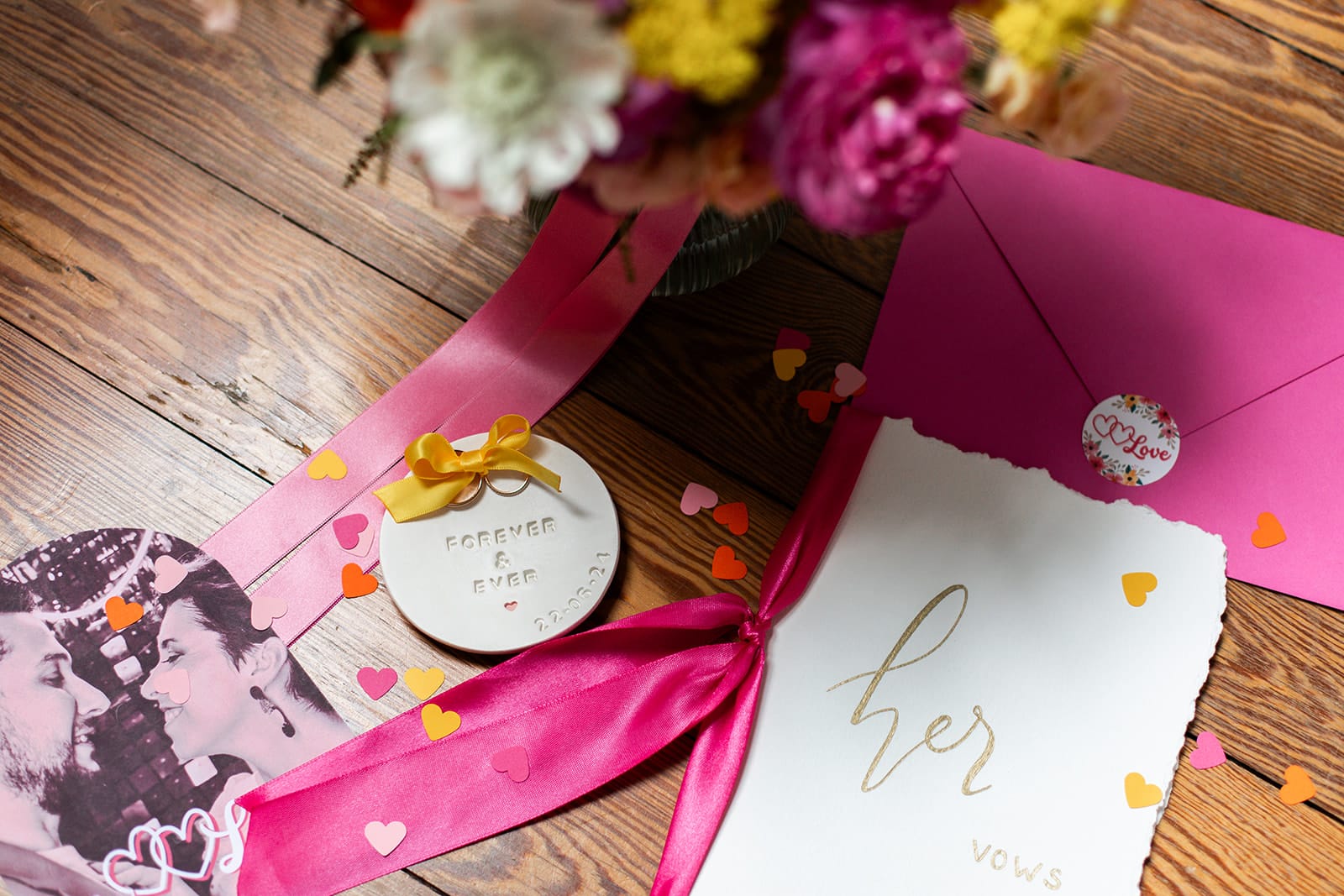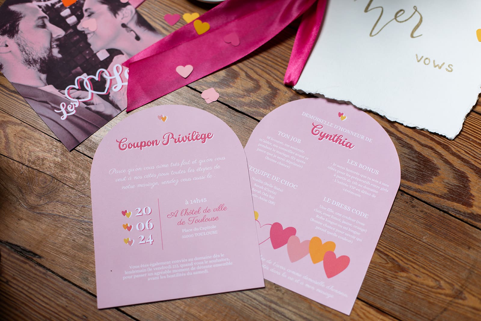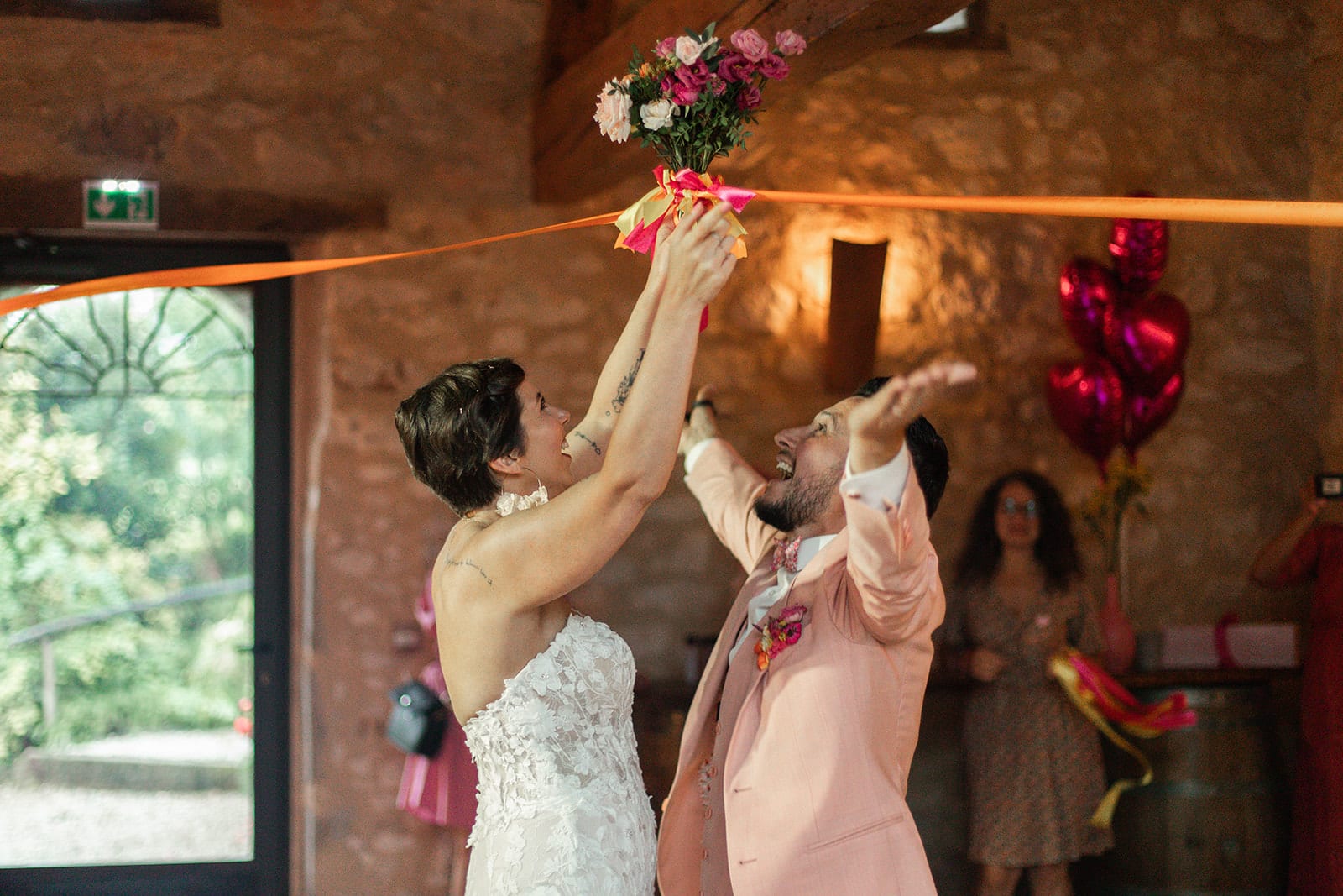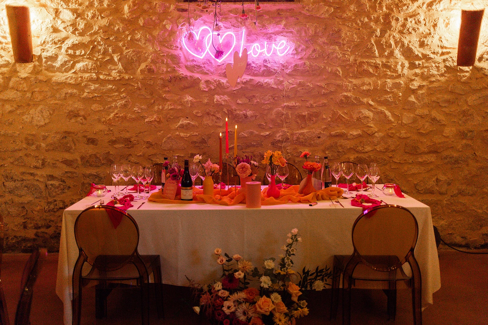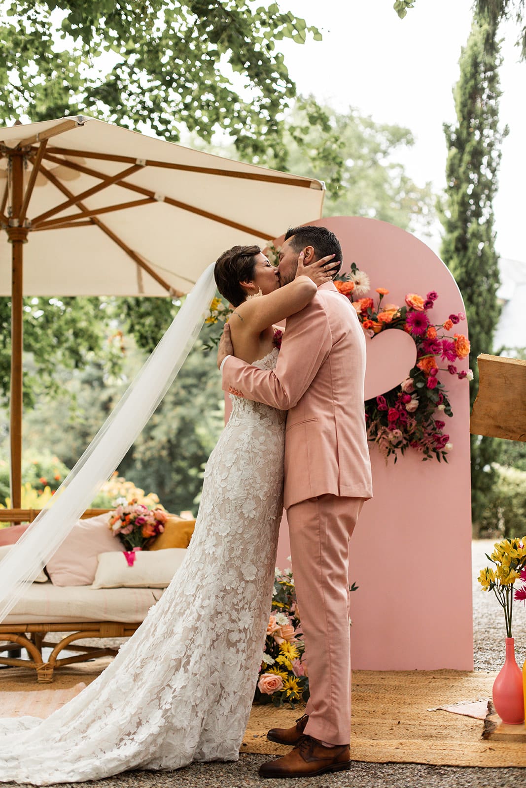 Nous avons décidé de faire de notre mariage un événement unique, en mettant l’accent sur la couleur rose, couleur à la fois vibrante et délicate, symbole de tendresse et de romantisme. Nous avons opté pour une décoration florale, colorée et surtout, faite par nous-mêmes ! Les fleurs, les objets décoratifs et même les petites attentions étaient en harmonie avec cette couleur douce et chaleureuse Chaque élément a été conçu avec soin et amour dans notre atelier. Cela a ajouté une touche personnelle et authentique à notre journée.
