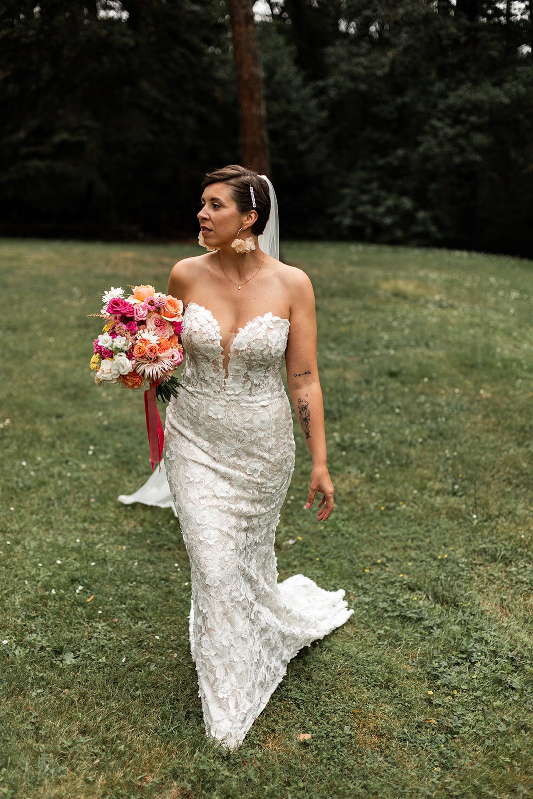 Pour moi, Cynthia, c’était le first look, cet instant suspendu où Julien m’a découverte dans ma robe. Un moment d’émotion pure qui restera gravé dans nos mémoires.